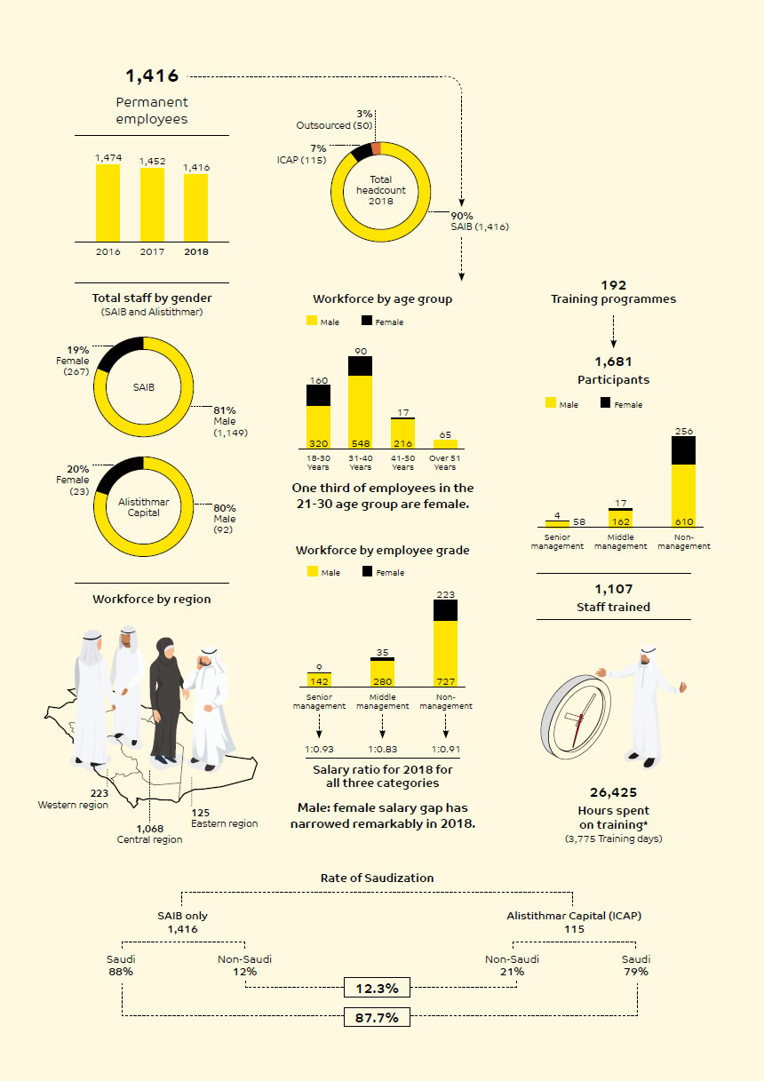 SAIB has always regarded employees as a key asset and has not stinted in training and developing them.